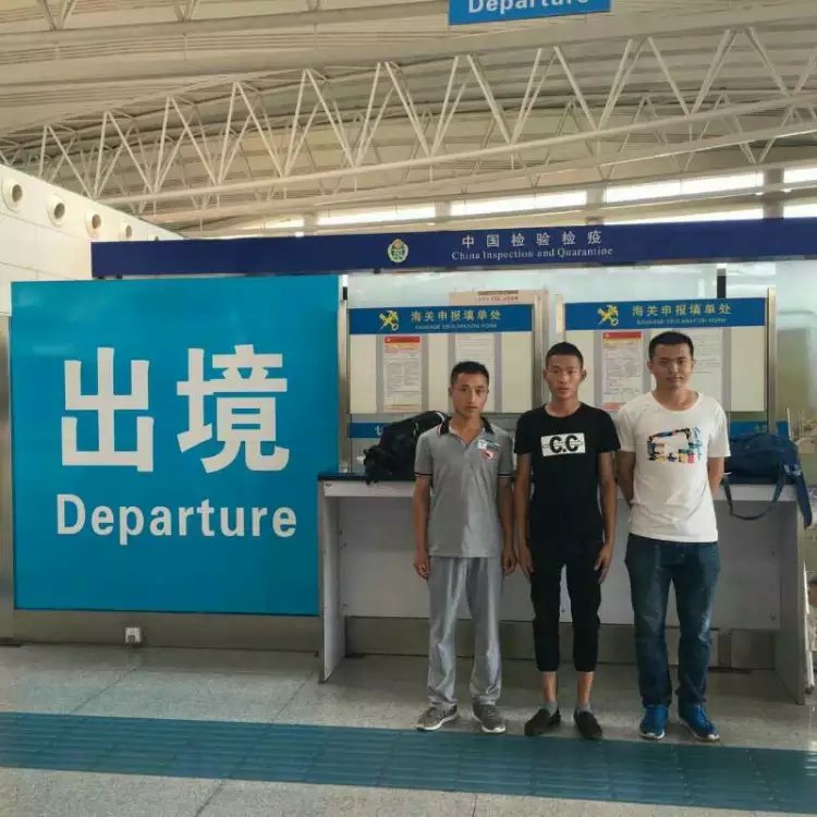 三人出境前合影